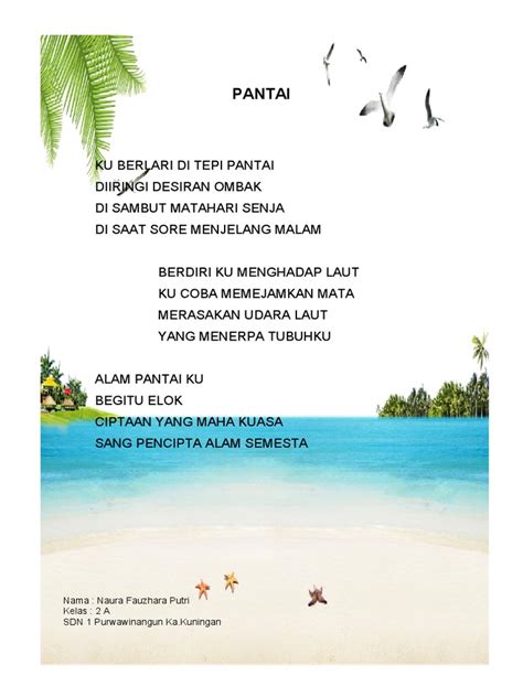 Contoh puisi pantai selalu berhasil membuat hati kita terhanyut dalam keindahan. Dengan kata-kata yang indah, puisi ini mampu membangkitkan imajinasi kita untuk merasakan keindahan pantai secara utuh. Bagaimana ombak menghantam karang, deburan air laut yang tenang, serta angin sepoi-sepoi yang menyentuh wajah kita. Tidak hanya itu, puisi pantai juga seringkali diisi dengan pesan-pesan moral yang dapat membuat kita berpikir dan merenung. Seperti apa sih contoh puisi pantai yang bisa membuat hati kita tersentuh? Berikut adalah beberapa contoh puisi pantai yang bisa membuatmu merasakan keindahan alam secara lebih dalam.
